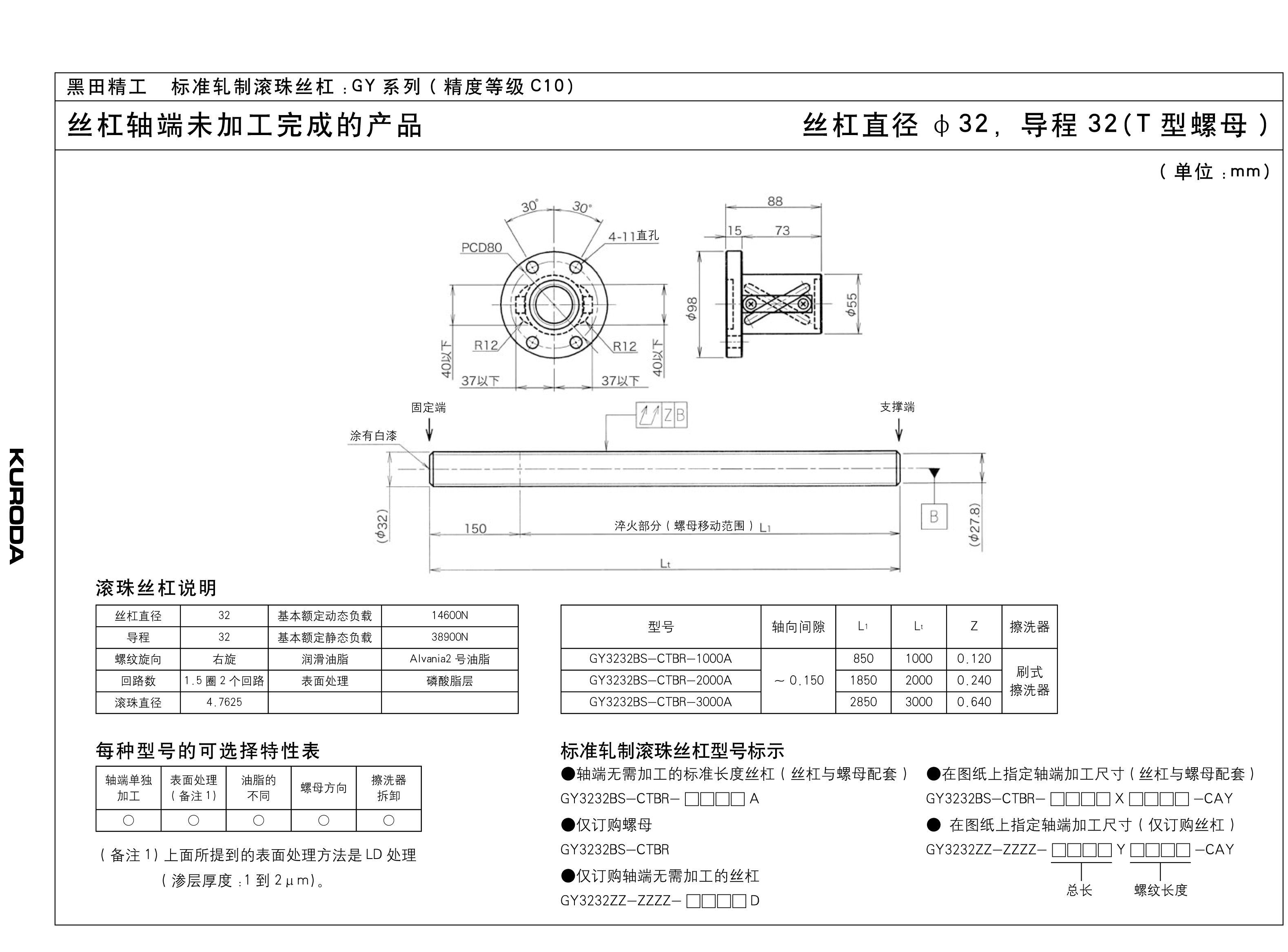 黑田精工滚珠丝杠拥有较高传动效率,在高速转动的情况下温升很小