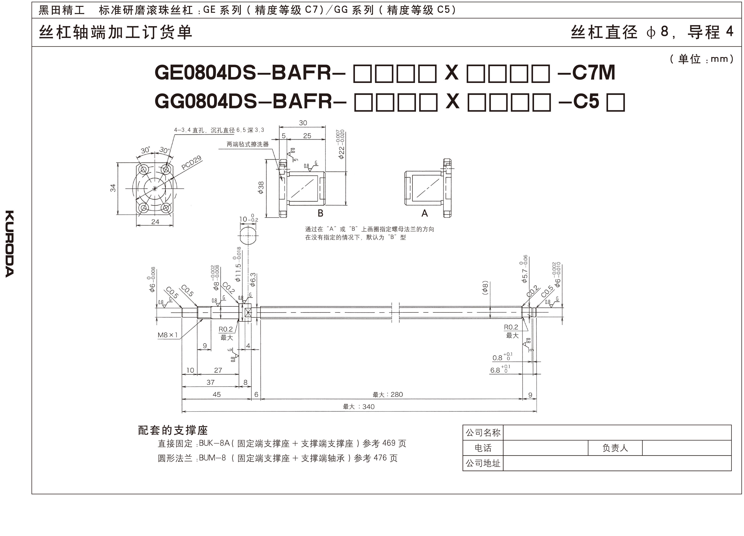为防止滚珠丝杠因被污染而损伤,GE和GG系列(除了丝杠直径为8和10的)防尘滚珠丝杠都装有擦洗器,但是为了能更有效的防尘,可以安装相应的防护装置,如防尘罩和收缩盖