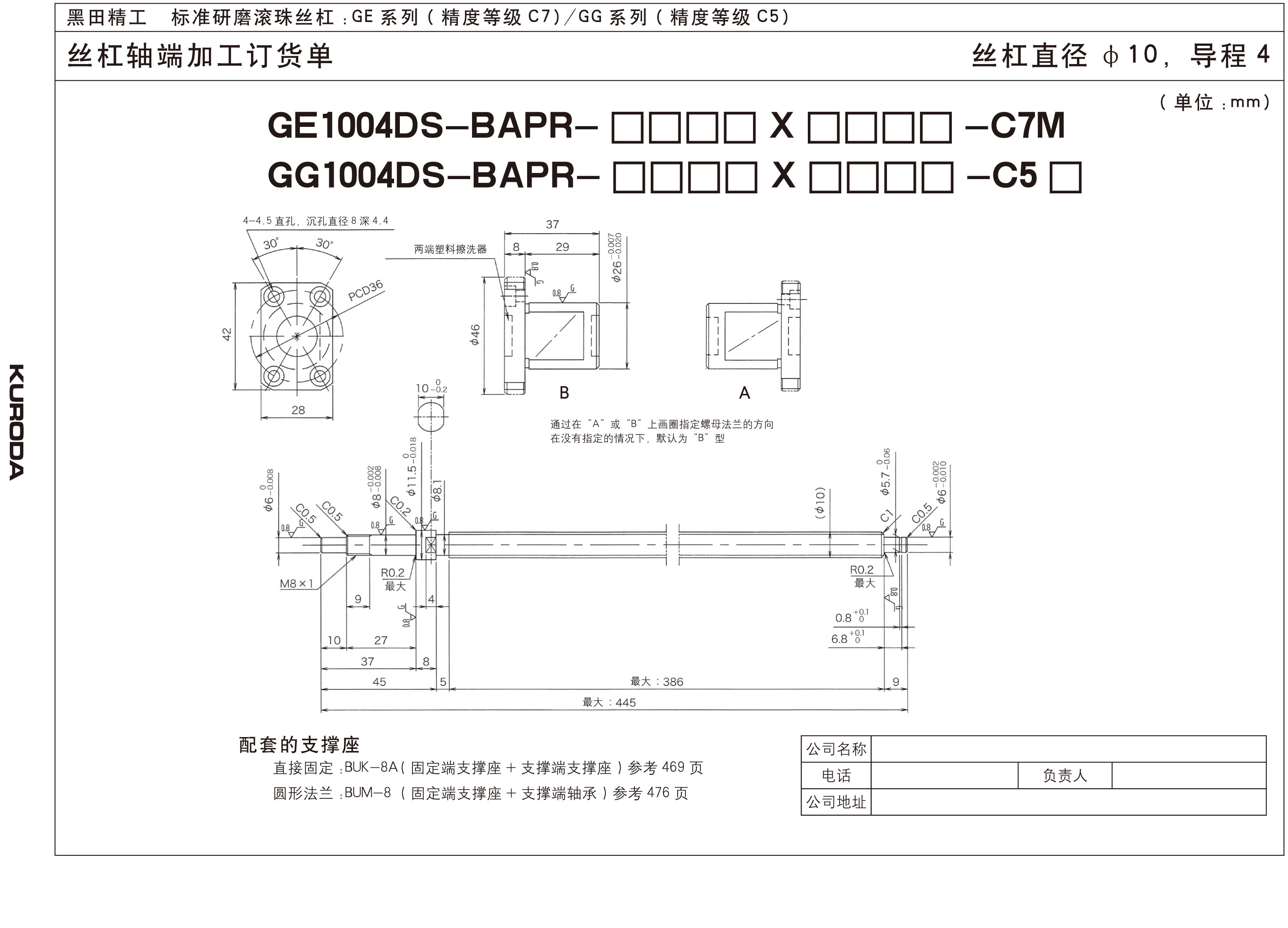 为防止滚珠丝杠因被污染而损伤,GE和GG系列(除了丝杠直径为8和10的)防尘滚珠丝杠都装有擦洗器,但是为了能更有效的防尘,可以安装相应的防护装置,如防尘罩和收缩盖