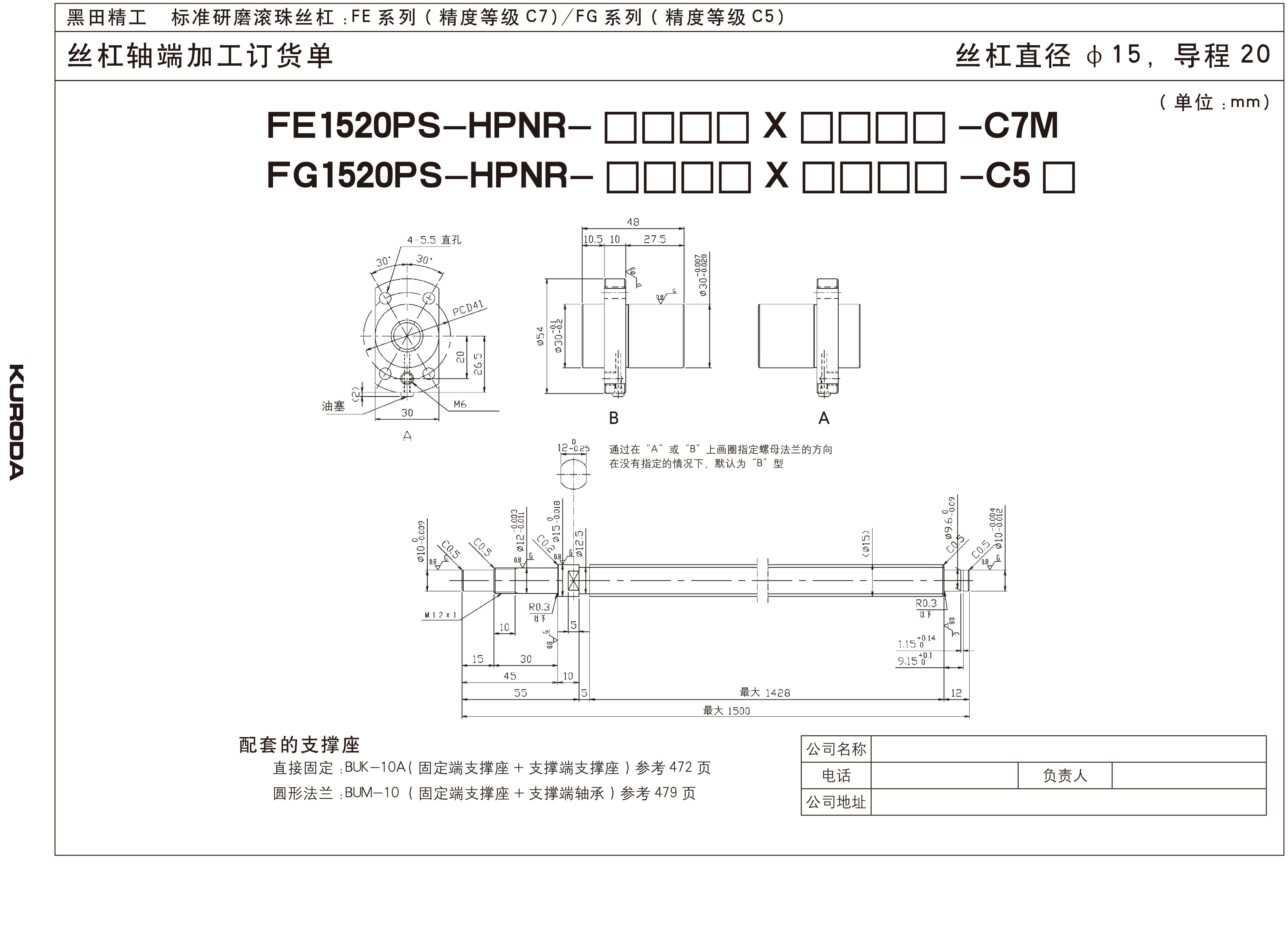 丝杆直径:15mm