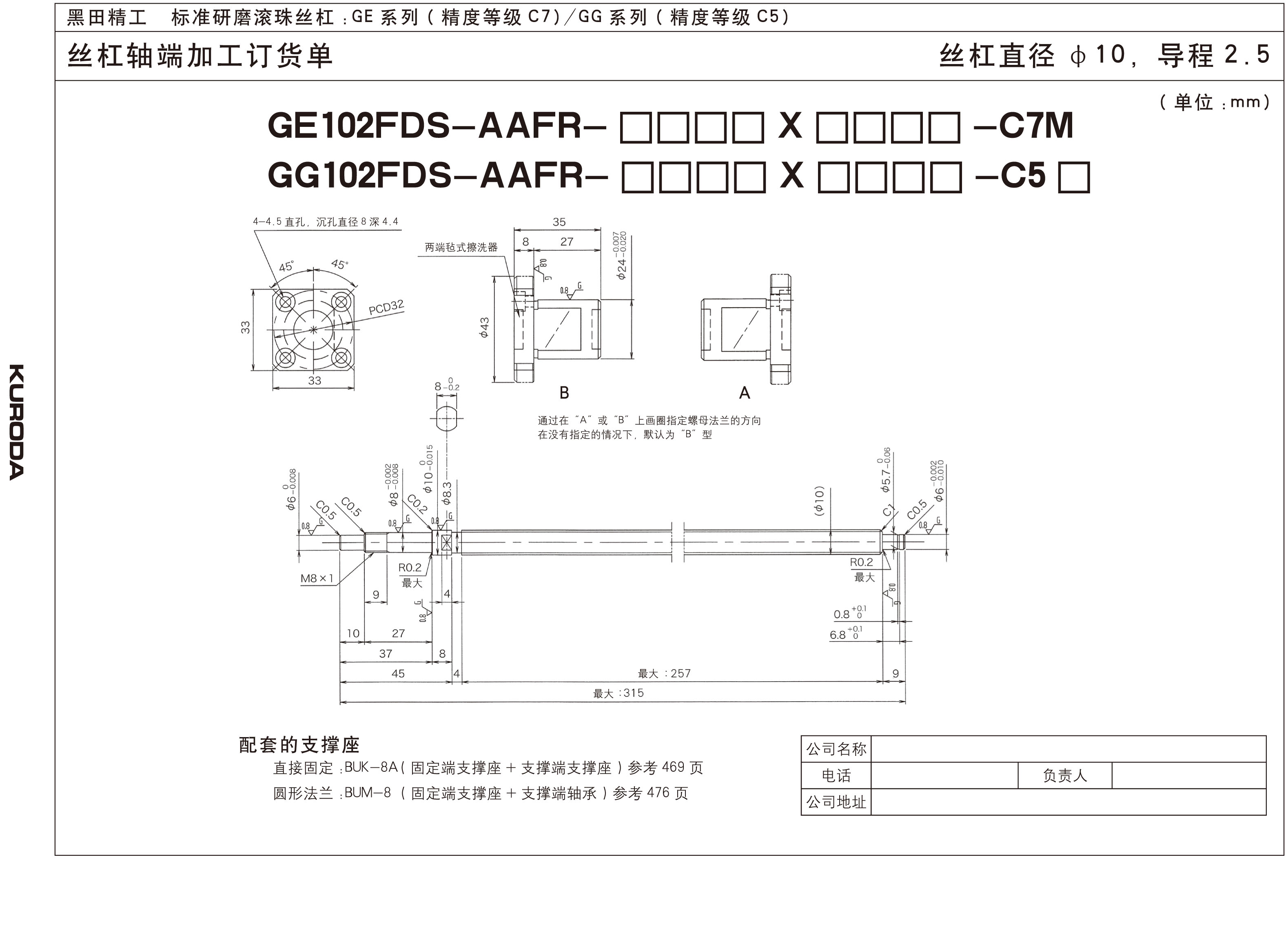 为防止滚珠丝杠因被污染而损伤,GE和GG系列(除了丝杠直径为8和10的)防尘滚珠丝杠都装有擦洗器,但是为了能更有效的防尘,可以安装相应的防护装置,如防尘罩和收缩盖