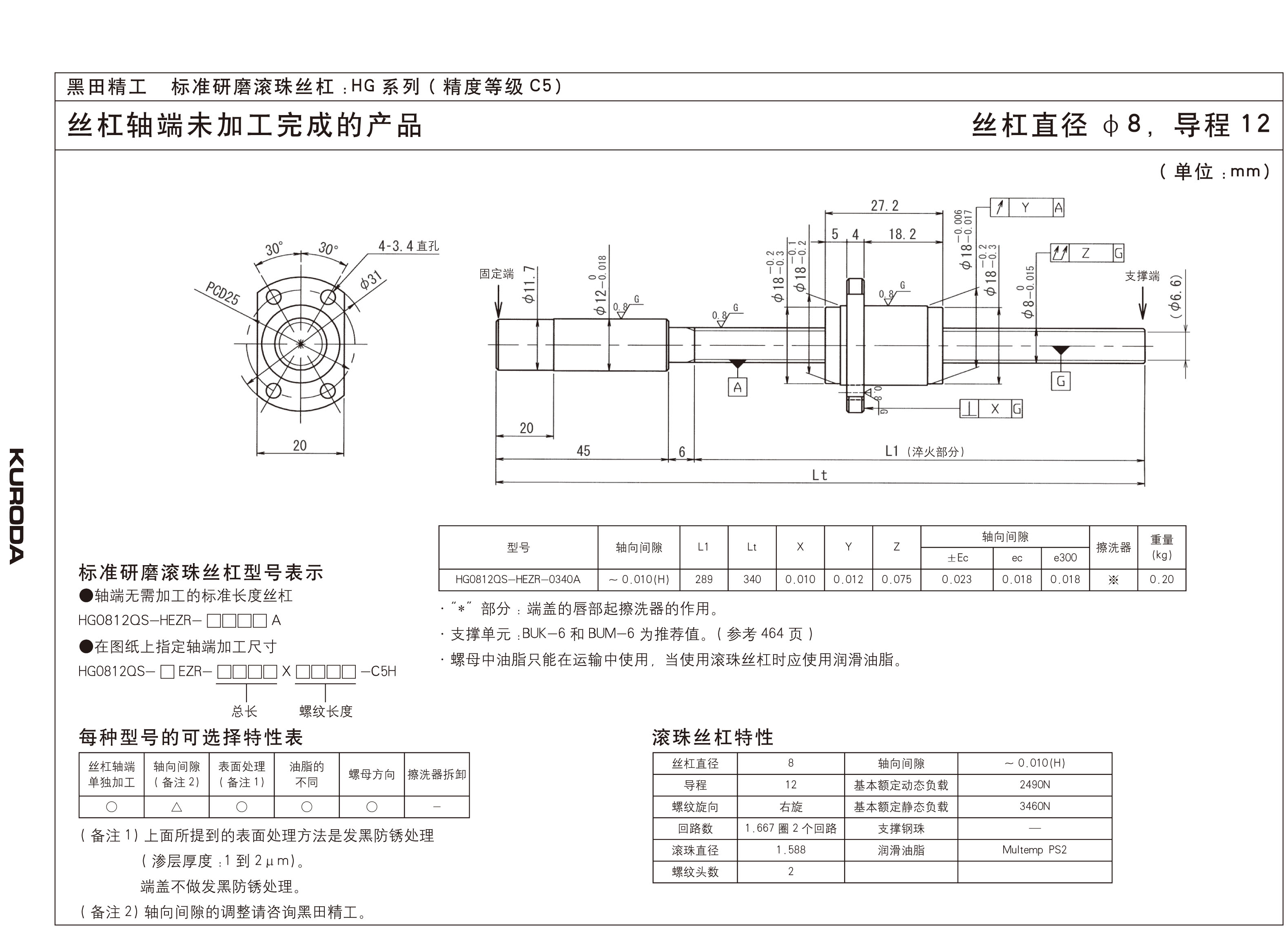 滚珠丝杠是滚动接触,在正常运行条件下,只需要定期地使用具有优秀防水性和抗热性的锂皂基油脂作为润滑脂,使用锭子油或汽轮机油(#90~#180)作为润滑油