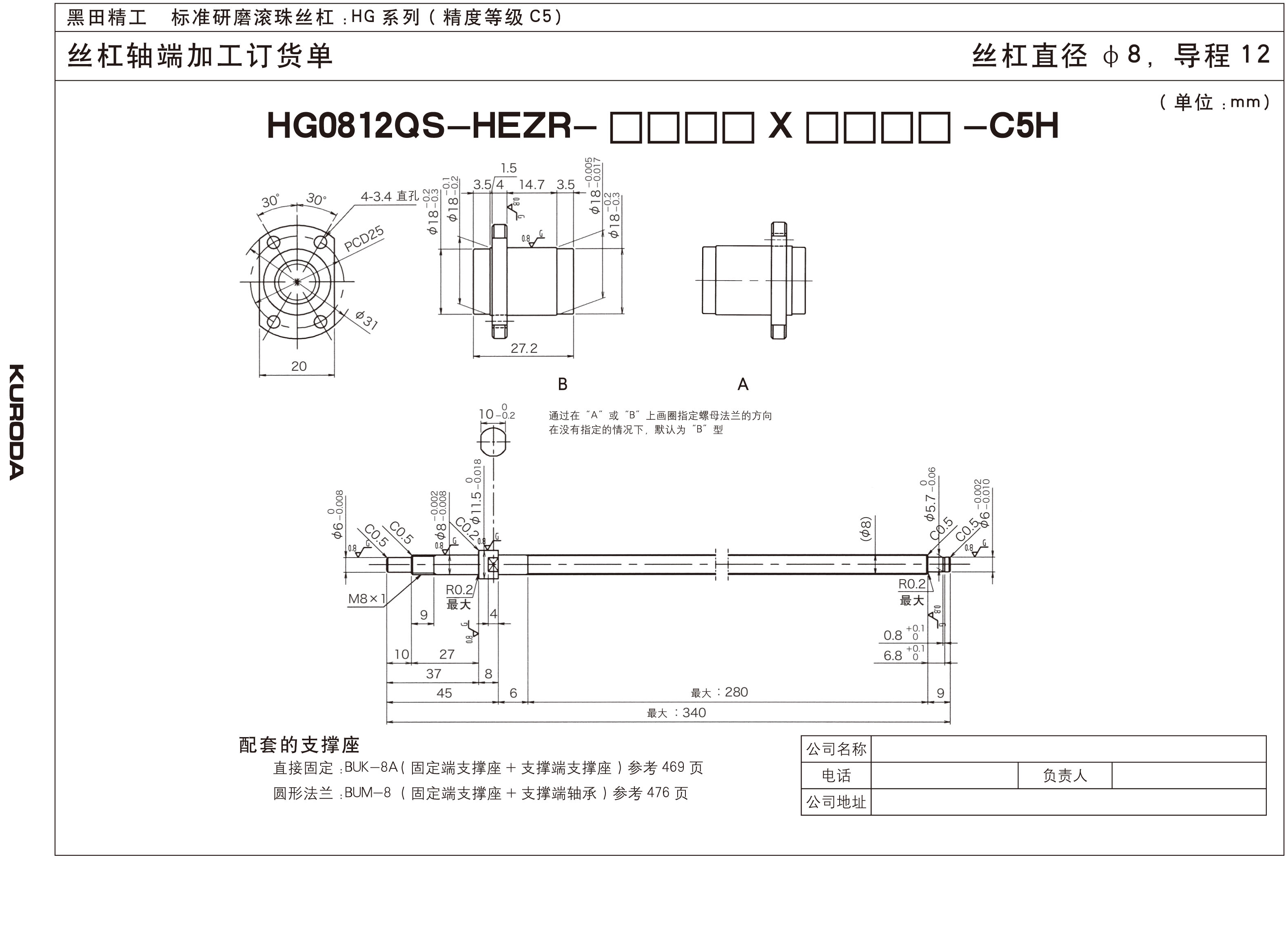 丝杆直径:8mm