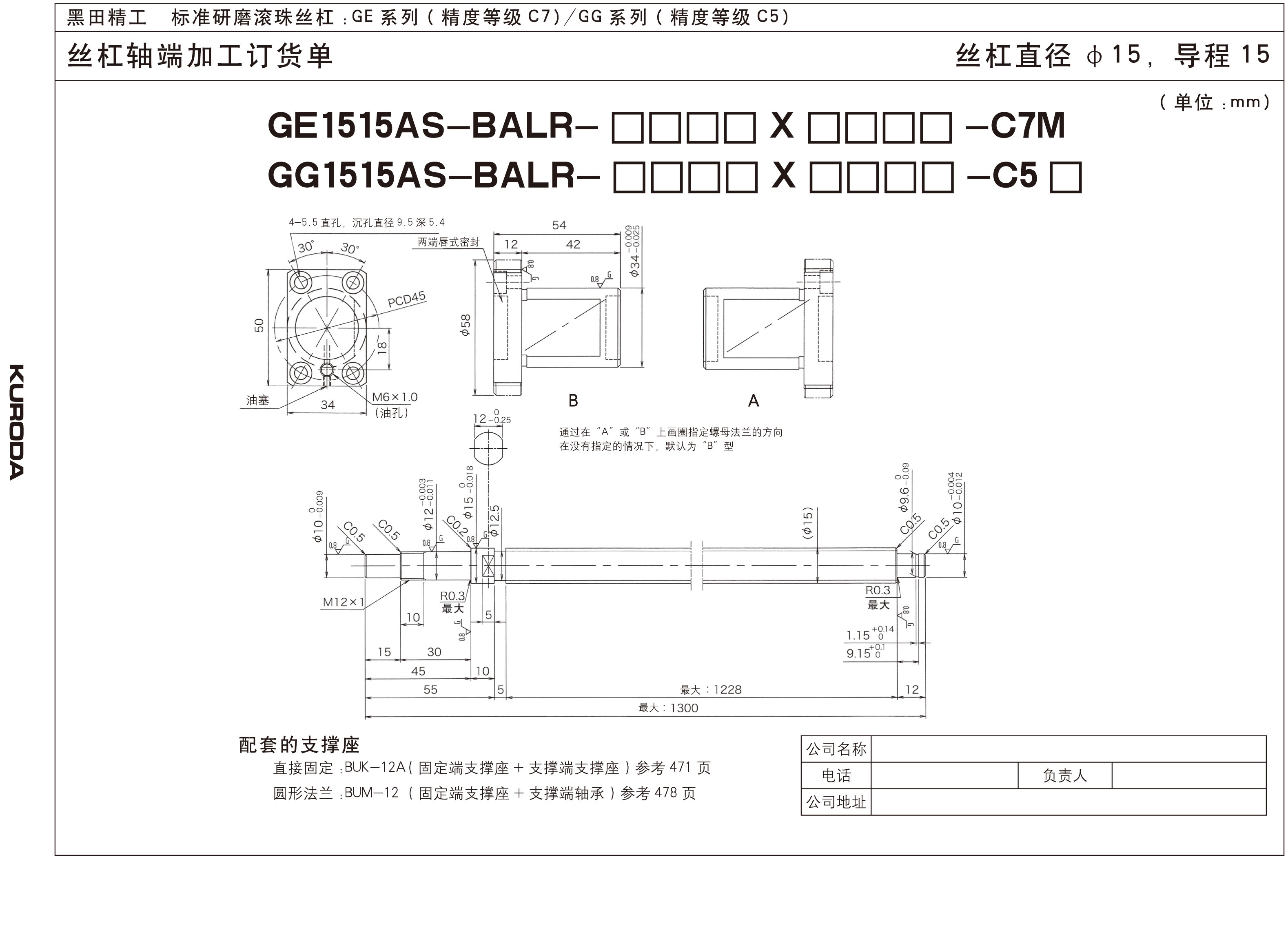 丝杆直径:15mm