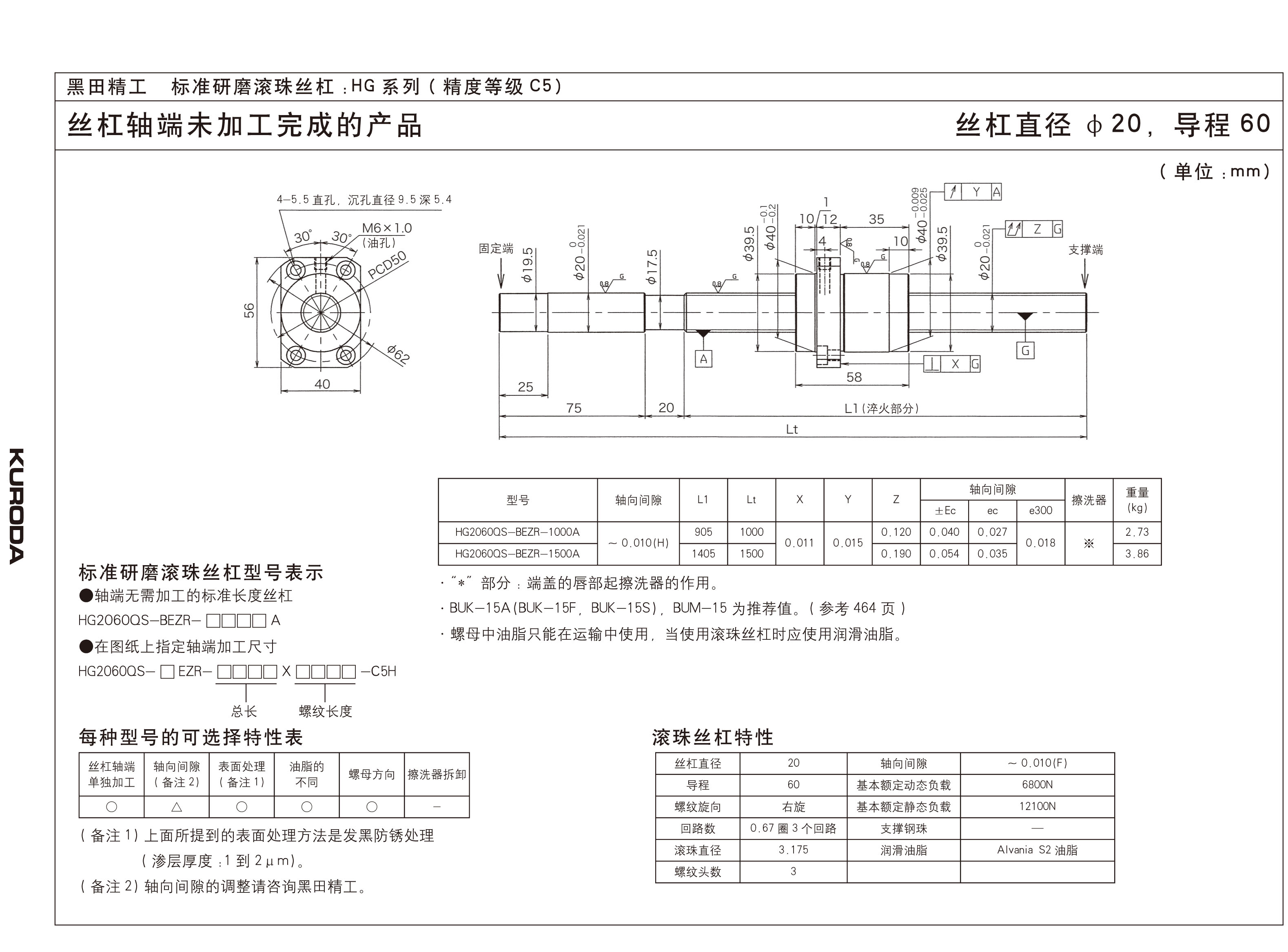 滚珠丝杠是滚动接触,在正常运行条件下,只需要定期地使用具有优秀防水性和抗热性的锂皂基油脂作为润滑脂,使用锭子油或汽轮机油(#90~#180)作为润滑油