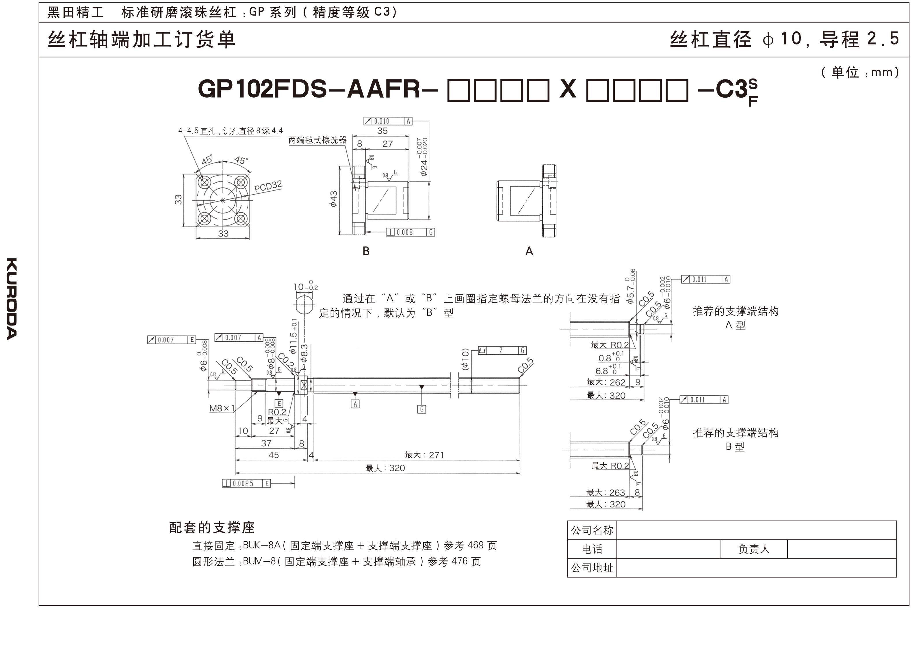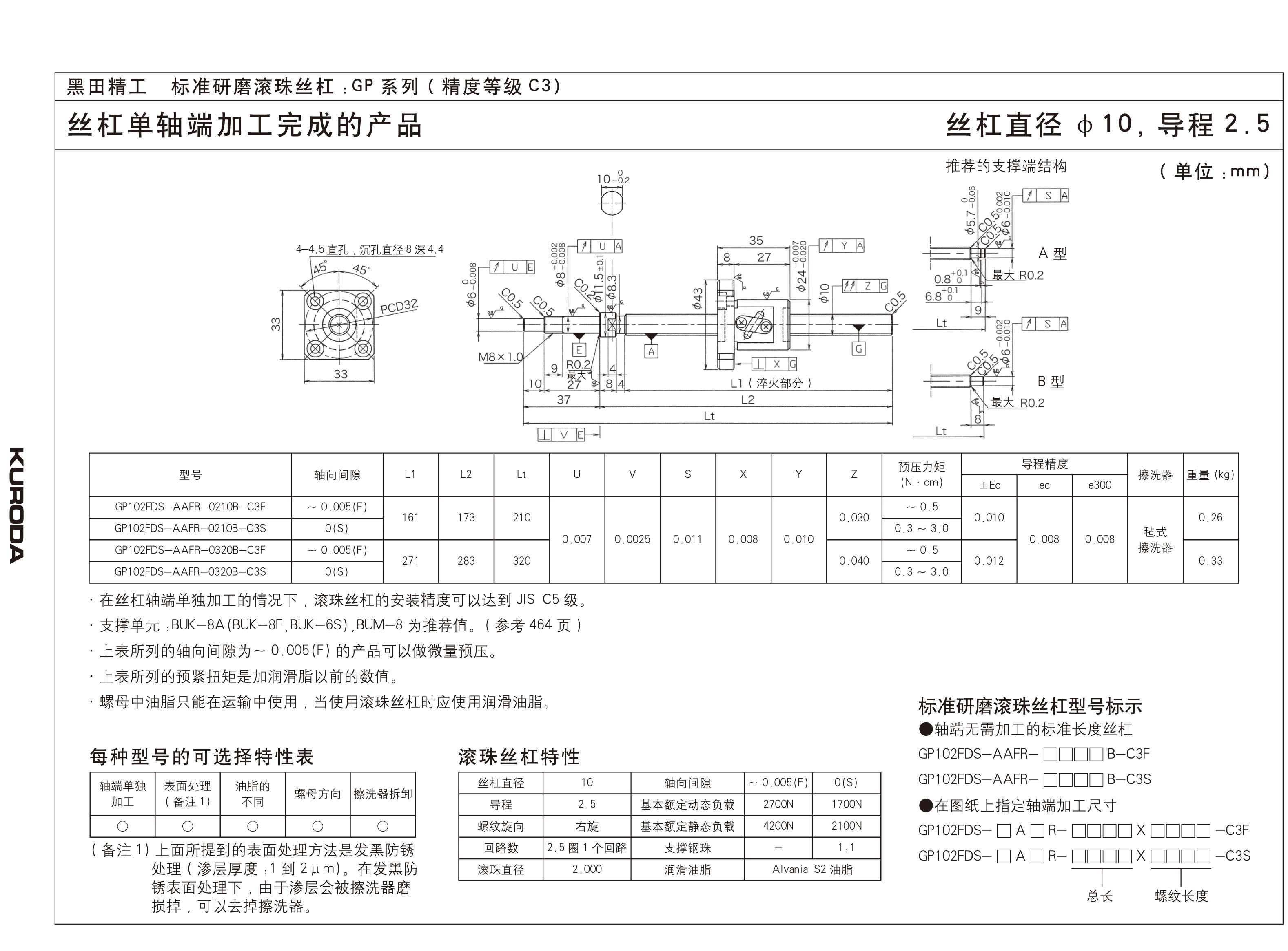 在JIS C3等级中,轴向间隙为S(预压型号)轴向间隙为F(小于0.005)的型号系列可以实现高精度进给