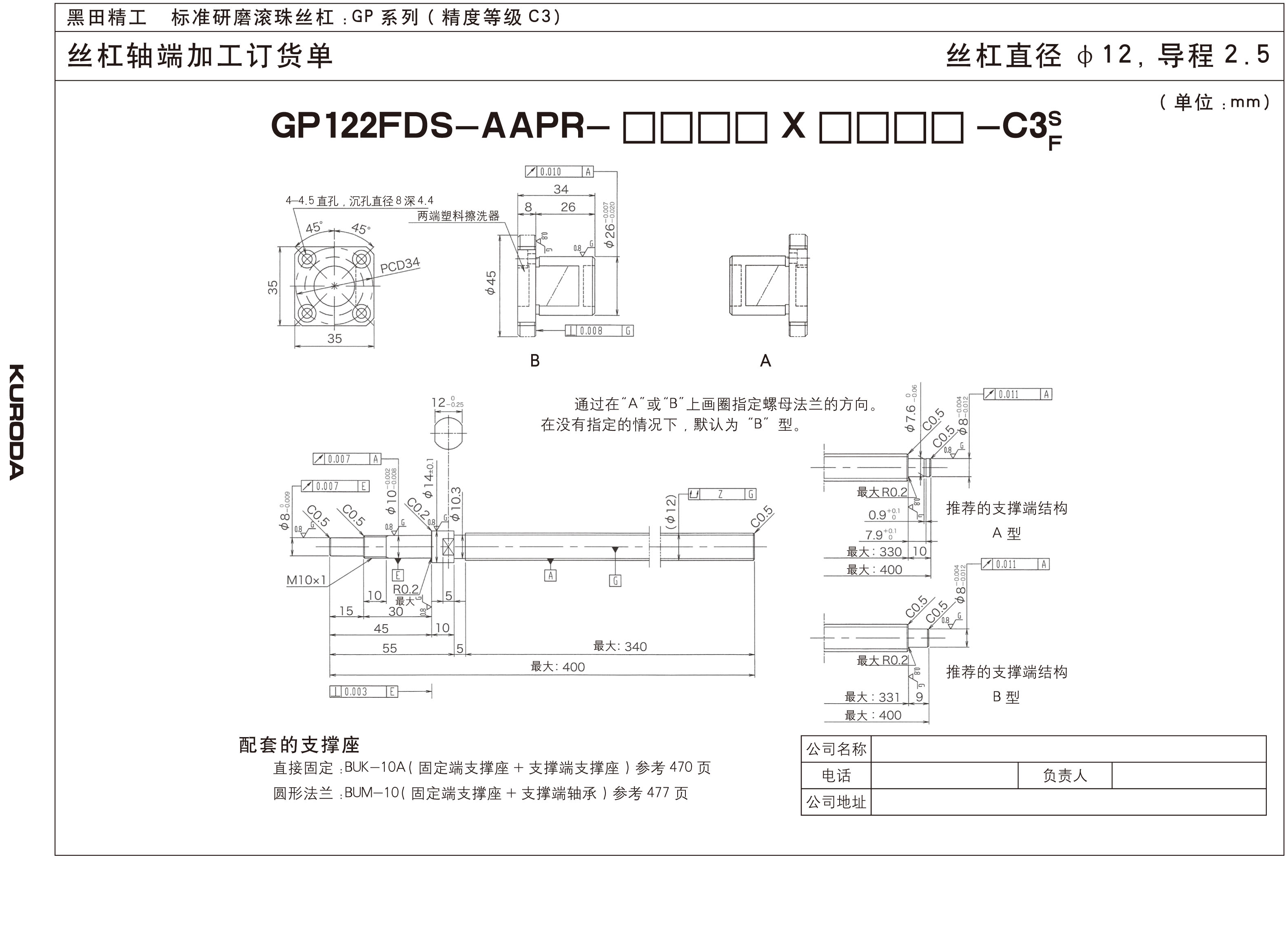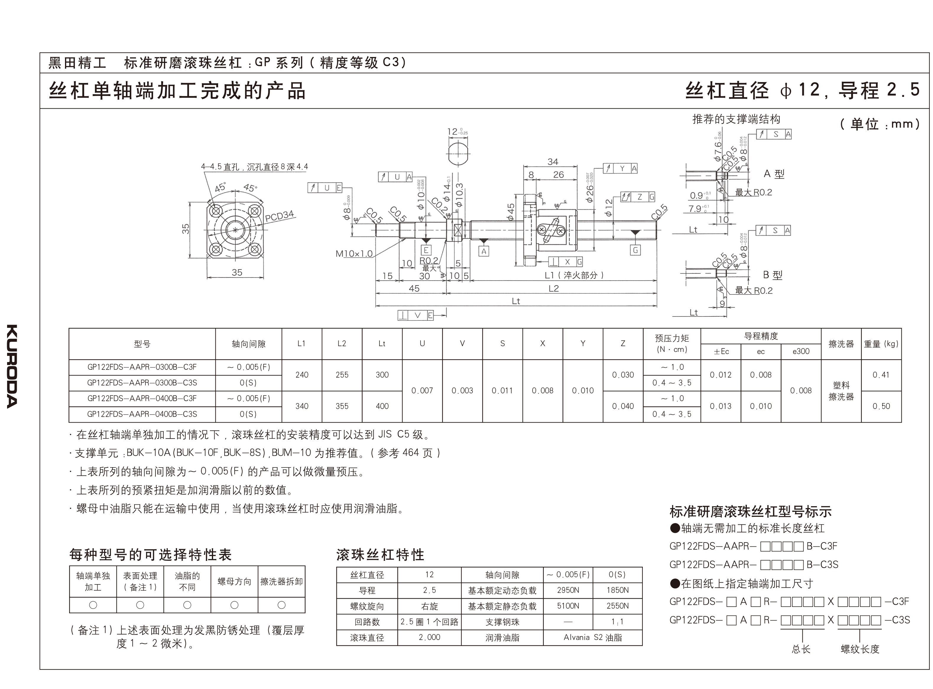 在JIS C3等级中,轴向间隙为S(预压型号)轴向间隙为F(小于0.005)的型号系列可以实现高精度进给