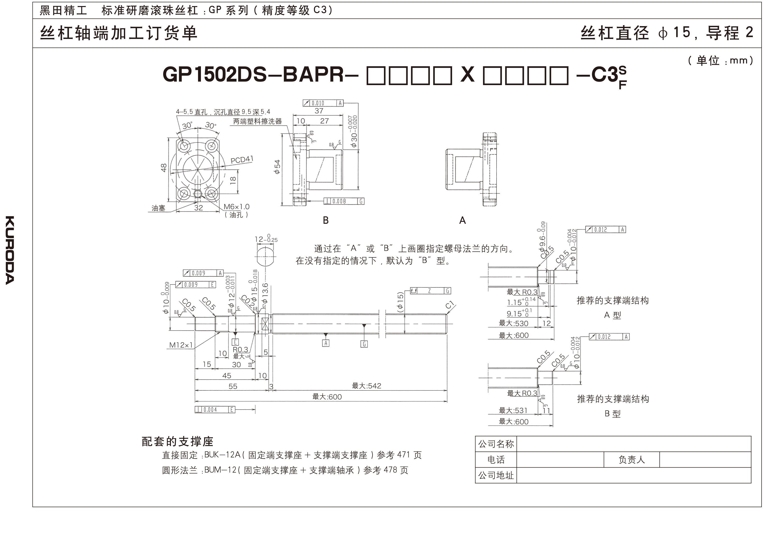 丝杆直径:15mm