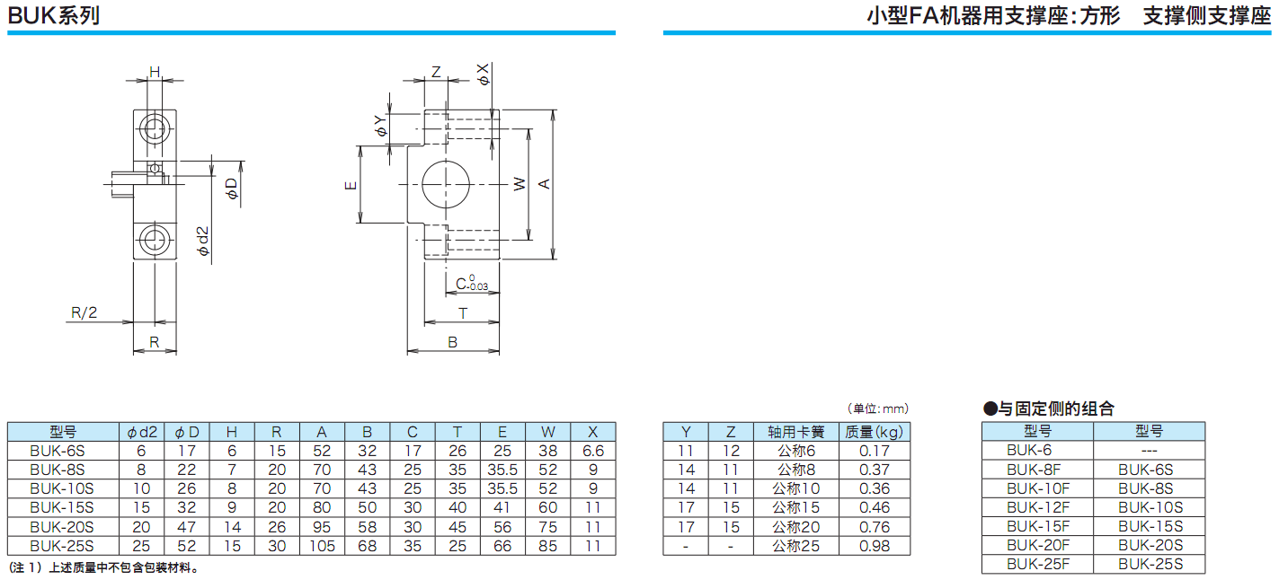 BUKE(方形)采用精度等级P0级的向心轴承。最适合于精度等级C7、C10滚珠丝杠的轻负荷、搬送用途。
