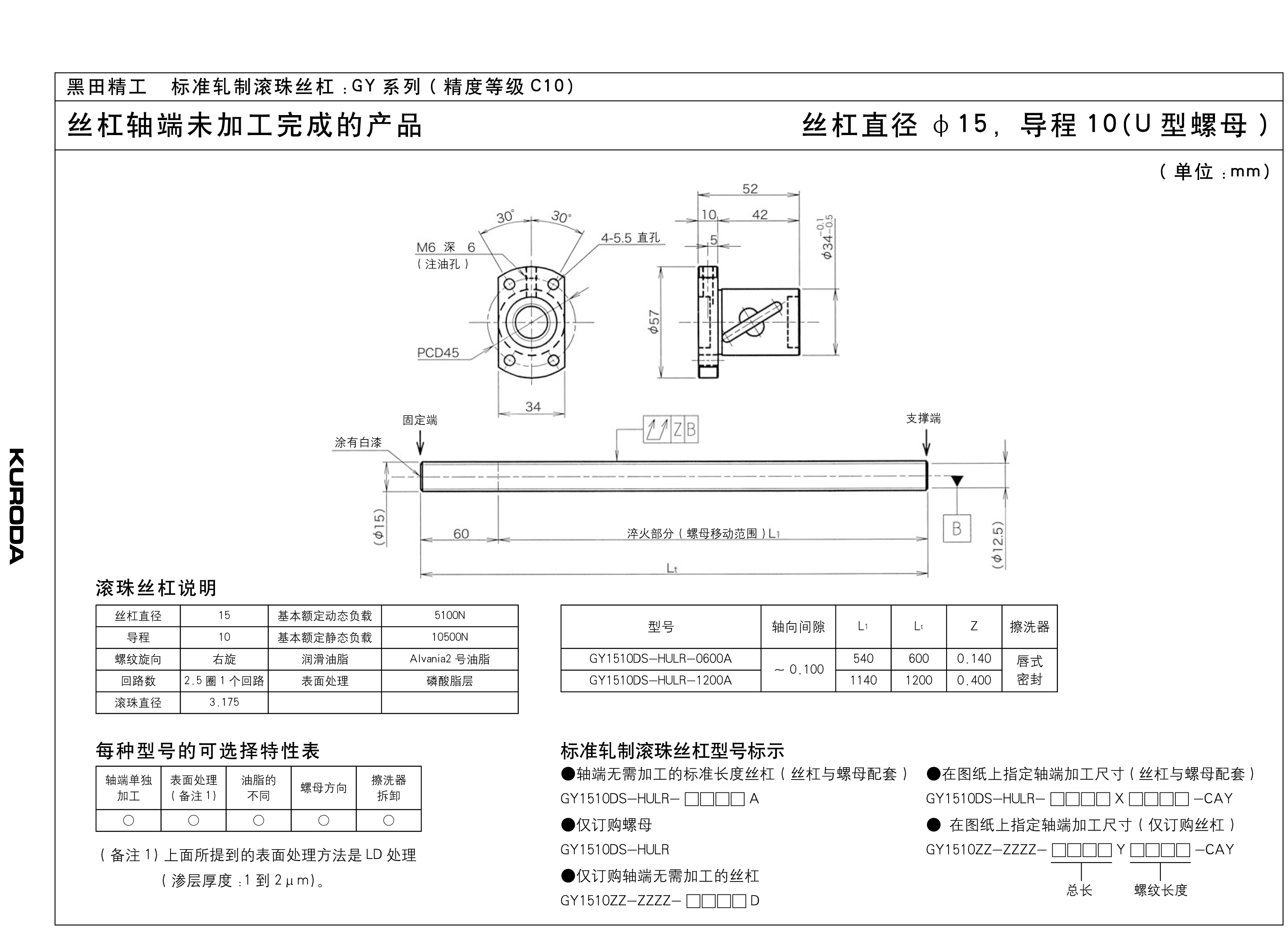 黑田精工滚珠丝杠拥有较高传动效率,在高速转动的情况下温升很小