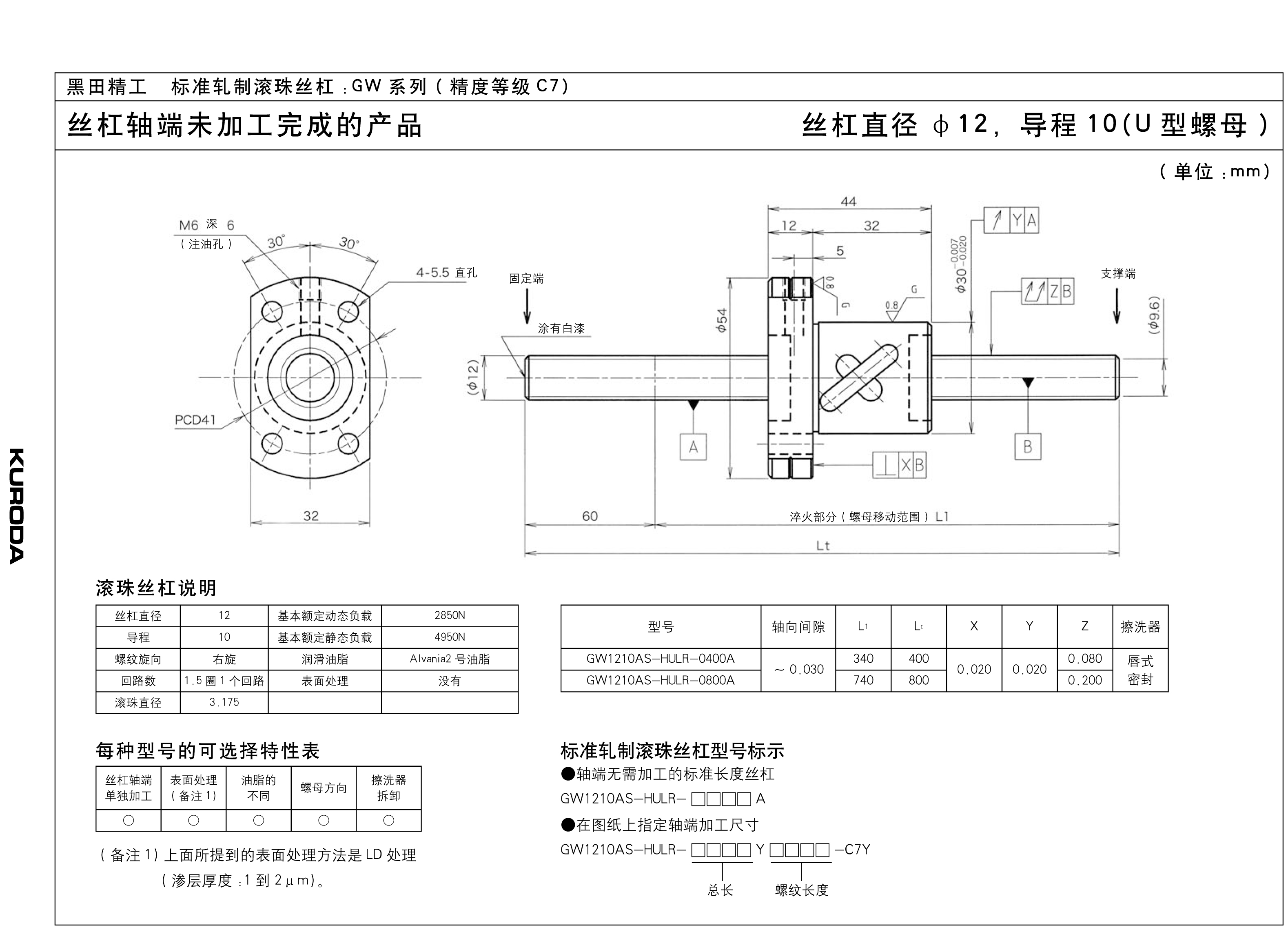 轧制滚珠丝杠具有较高的传动效率,所需力矩改为普通丝杠的1/3