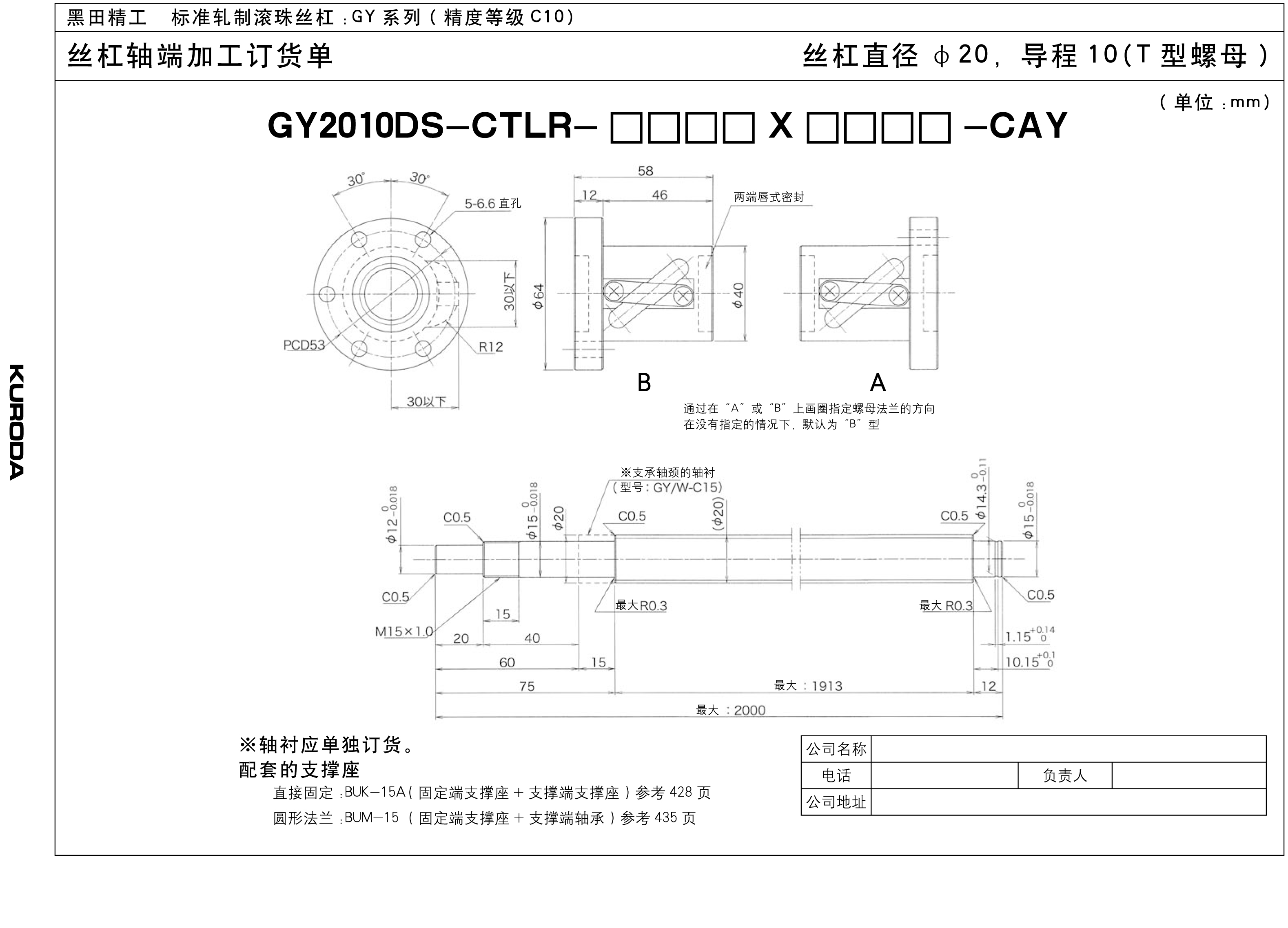 丝杆直径:20mm